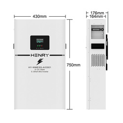 HENRY-Sistema de almacenamiento de energía solar fuera de la red para el hogar, 48V, 51,2 V, 100ah, 5kwh, batería Lifepo4 apilada e inversor, todo en uno